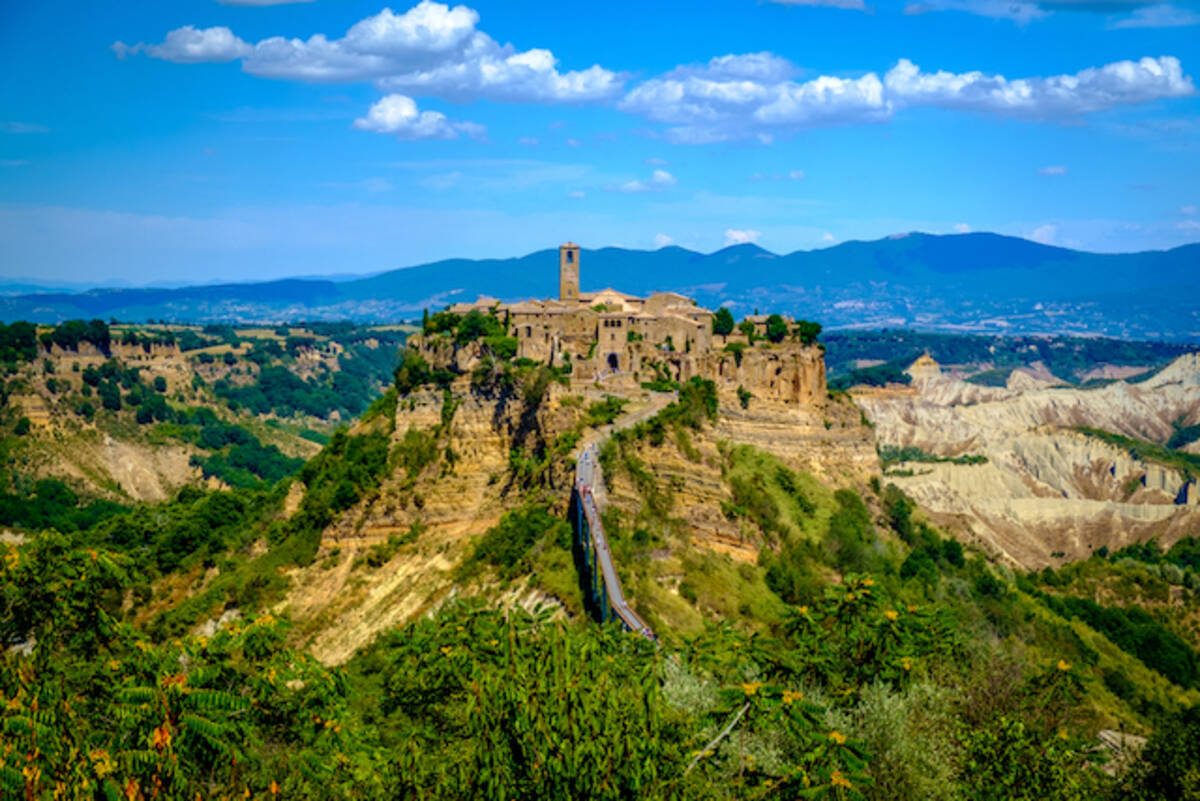 チヴィタ ディ バニョレージョ 絶景 長い橋の先 断崖絶壁の上に佇む 天空の町 フォートラベル